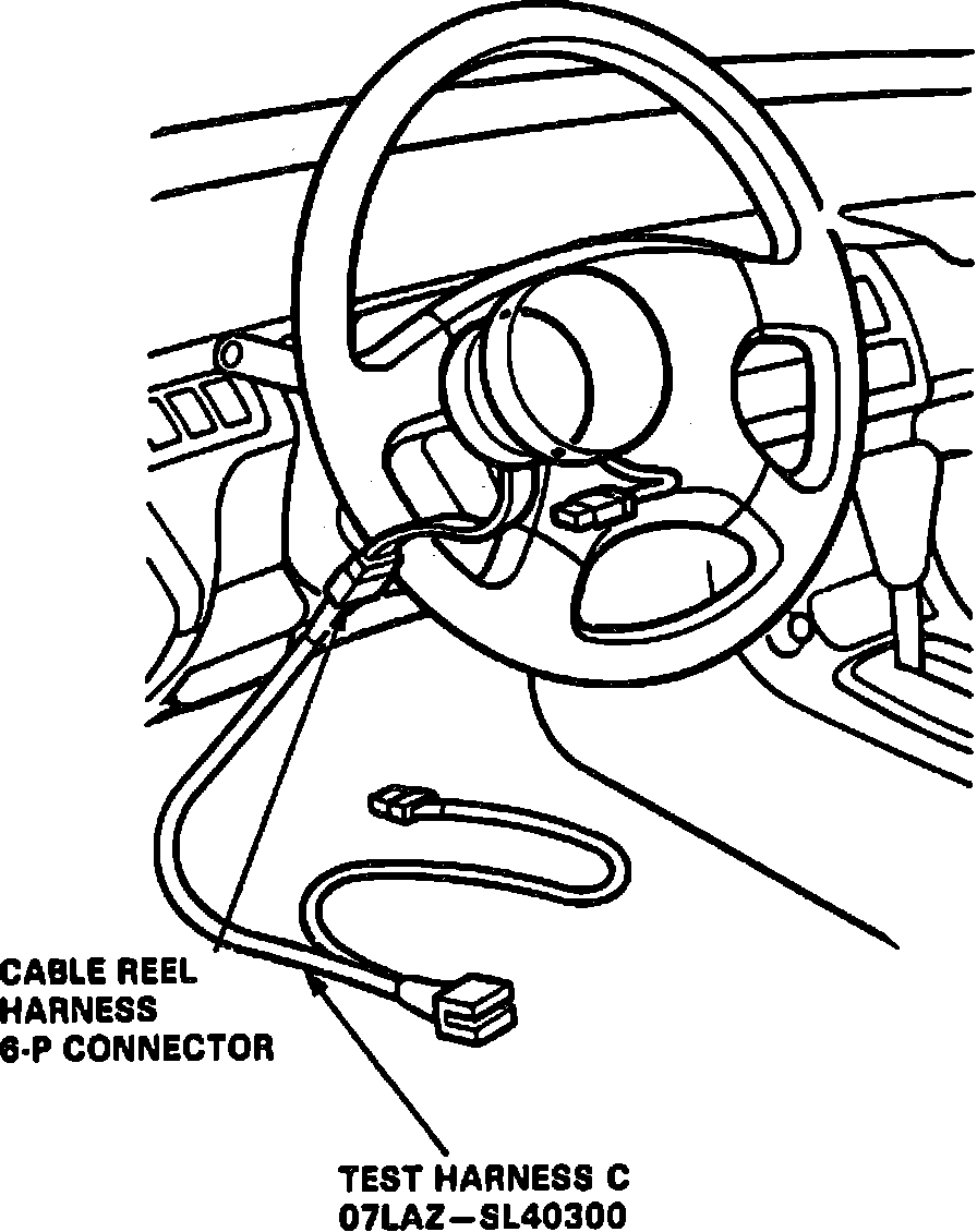 4. Disconnect cable reel harness 6-P connector from airbag harness, then connect test harness C only to cable reel harness. Fig. 37.