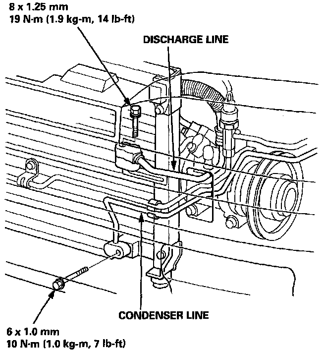 7. Disconnect the condenser line and discharge line from the condenser.