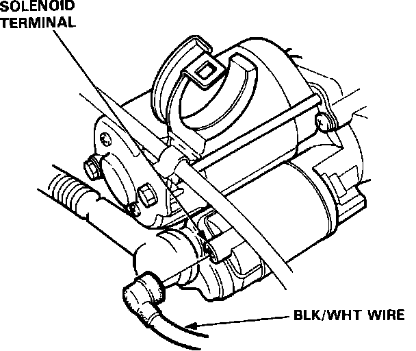 ^ If the starter cranks the engine, check for an open in the BLK/WHT wire circuit between the starter and ignition switch, and connectors. Check the ignition switch.
