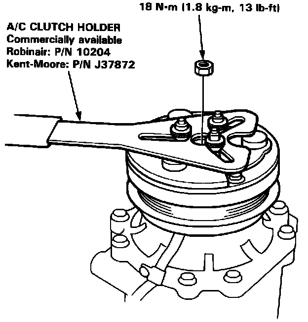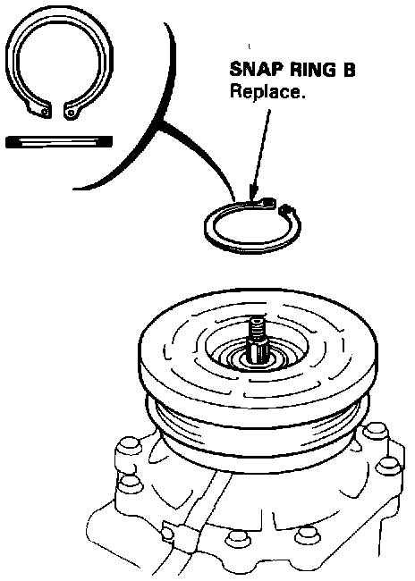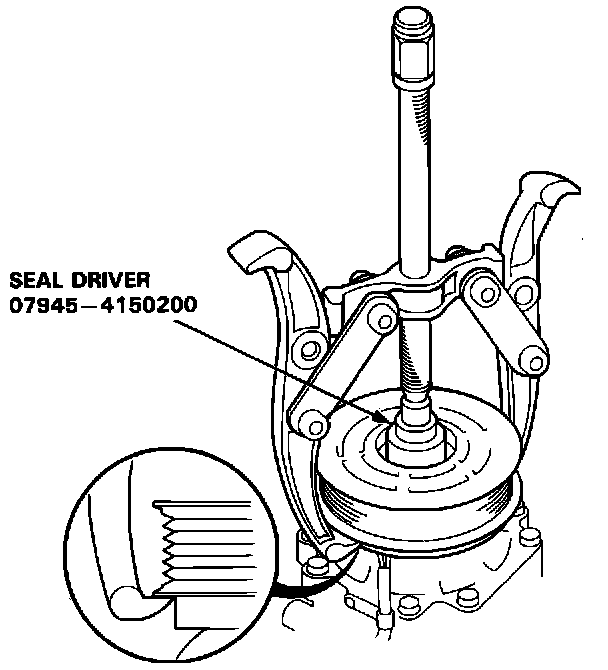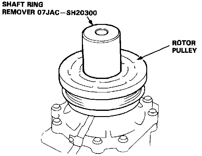 NOTE: If the rotor pulley does not press on straight, remove it and check the rotor pulley and compressor boss for burrs or damage.