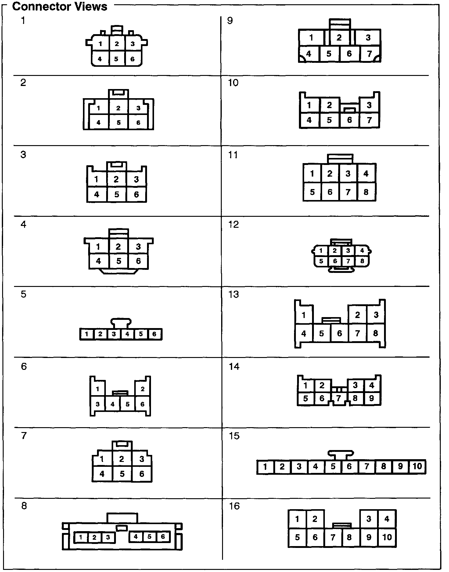 Connector Views: 1 Thru 16: