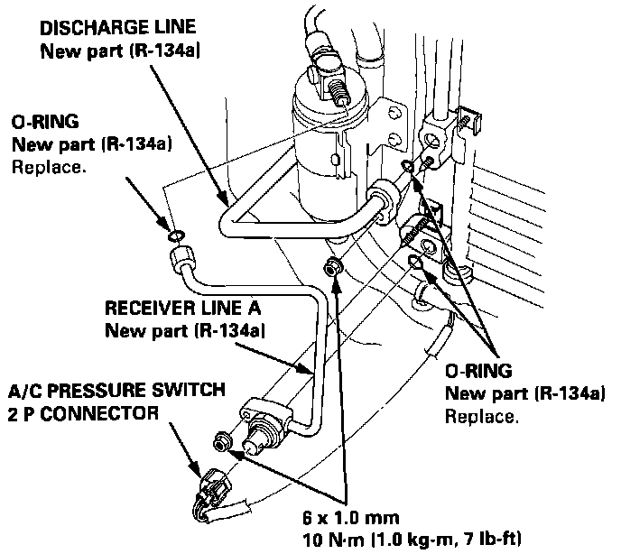 NOTE: Be sure to use the right 0-rings for R-134a to avoid leakage.