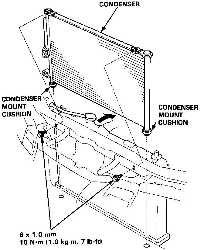 - Be sure to install the condenser mount cushions securely into the holes.