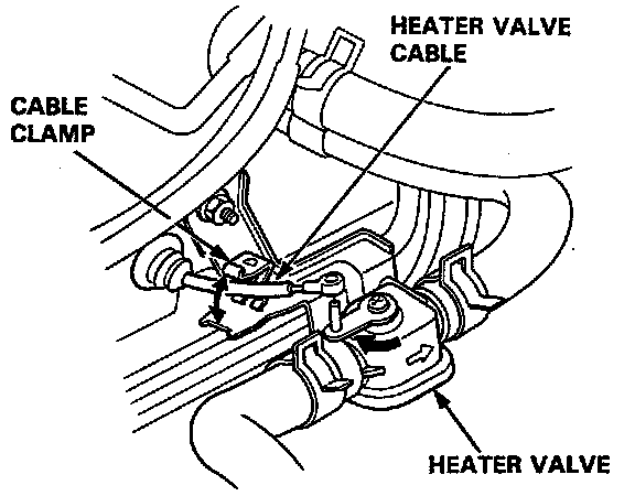 2. Snap open the cable clamp and disconnect the heater valve cable from the heater valve.