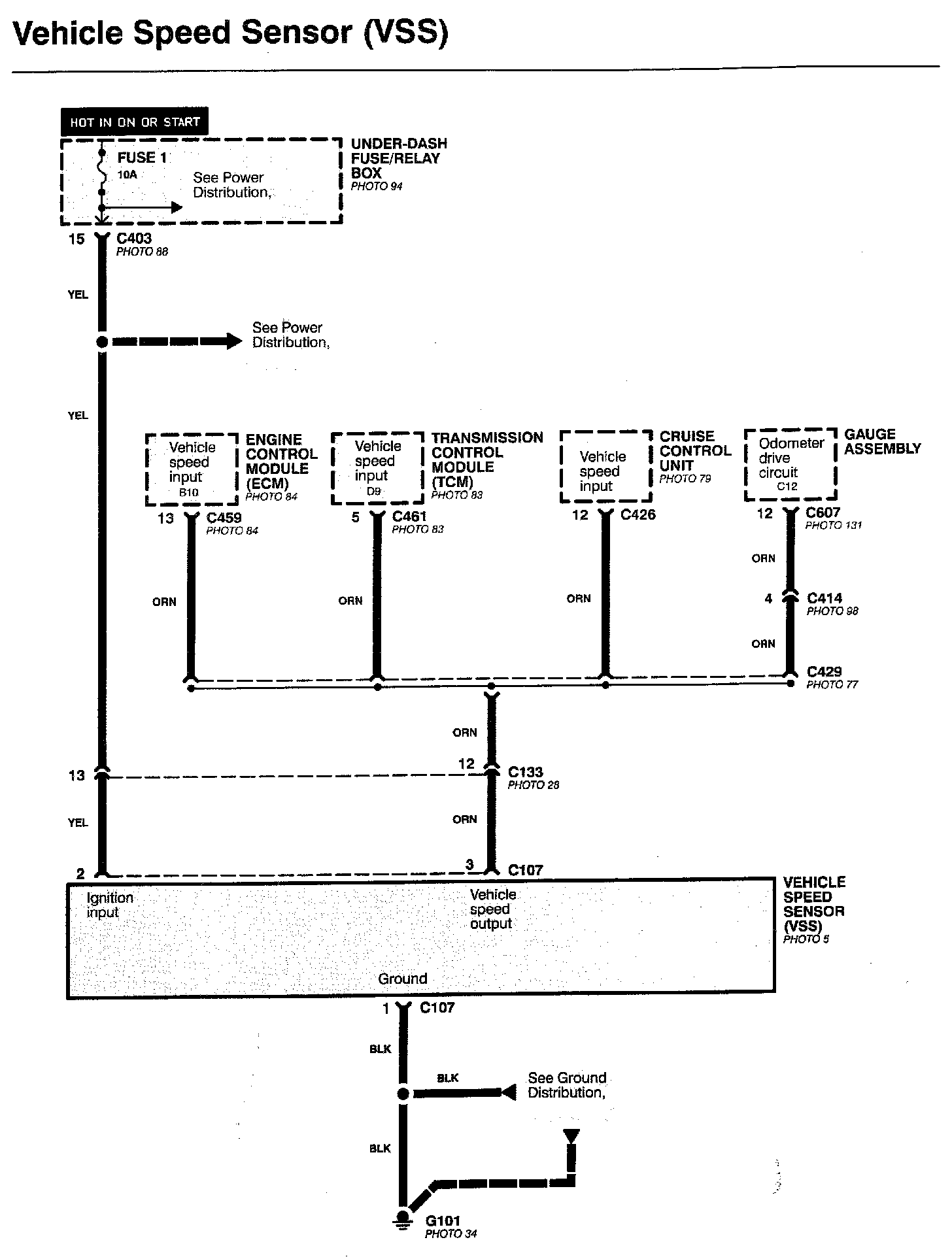 The sensor is used by the ECM to determine vehicle speed and by the speedometer to drive the trip odometer/mileage odometer stepper motors and the speedometer driver to indicate vehicle speed.