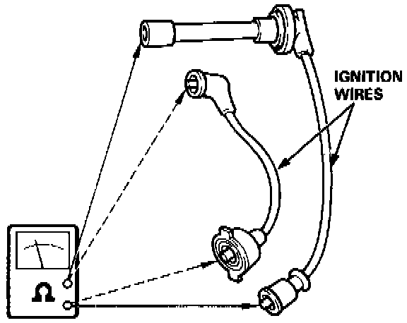3. If resistance exceeds 25 kohm, replace the ignition wire.