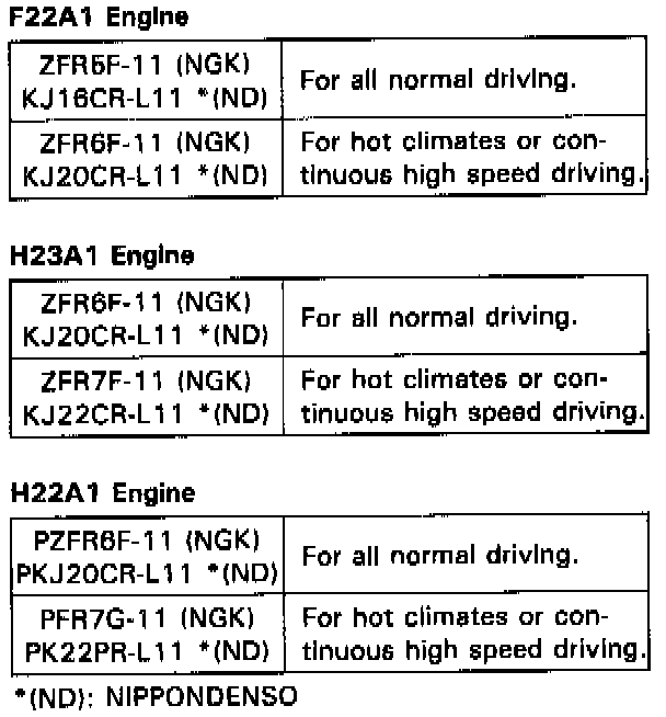 2. F22A1/H23A1 engine: Adjust the gap with a suitable gapping tool.