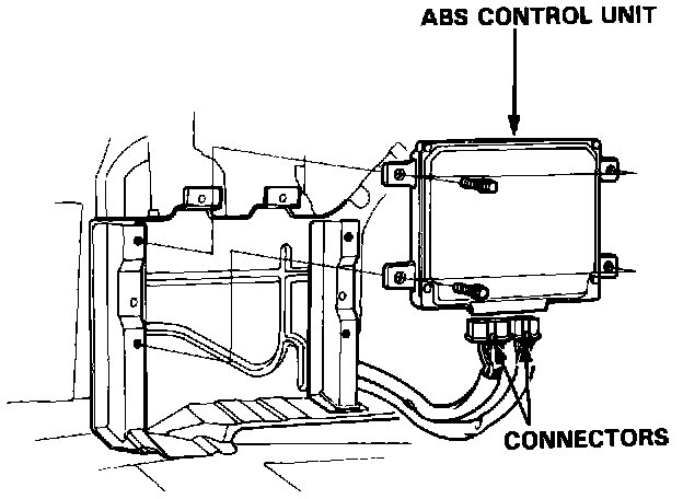 3. Remove the ABS control unit attaching bolts, then remove the ABS control unit.