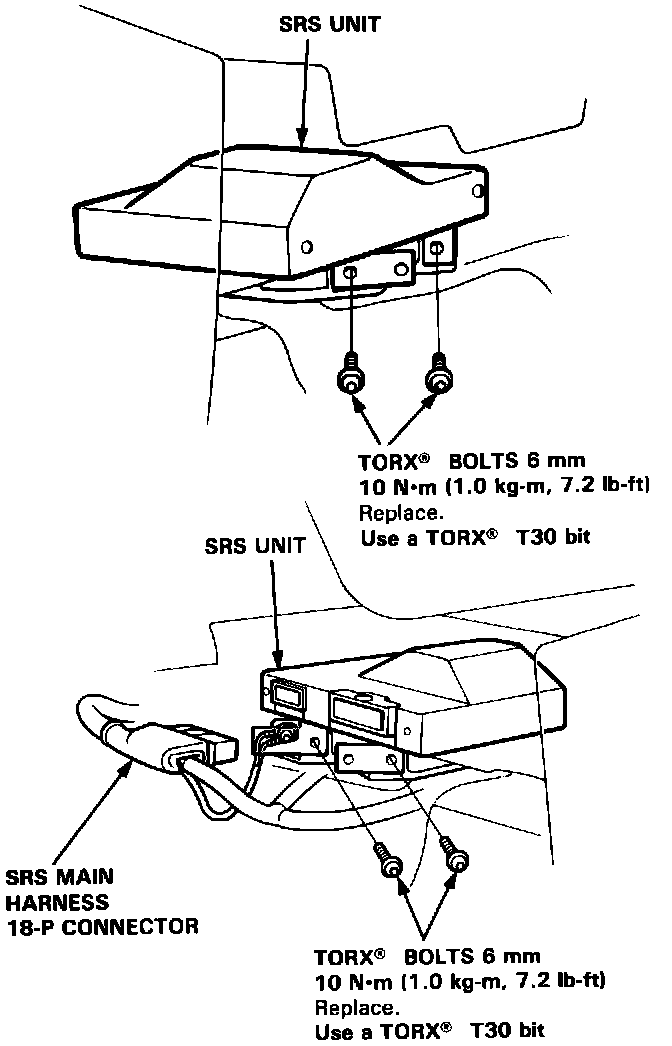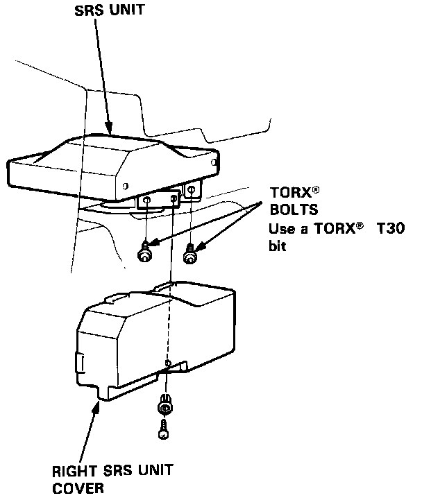 5. Remove the four TORX bolts from the SRS unit, then pull out the SRS unit from the driver's side.
