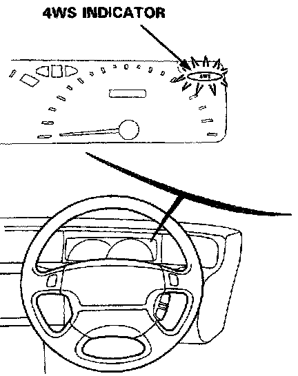 4WS: Set the front main steering angle sensor in the neutral position and jump the service check connector to turn the 4WS indicator ON.