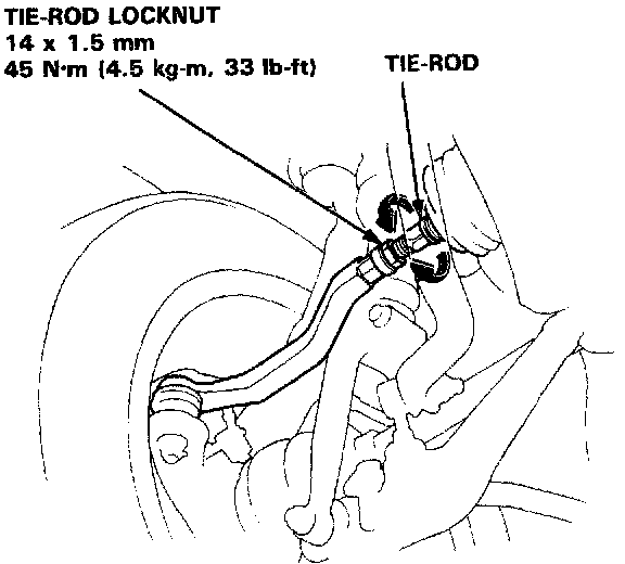 NOTE: After adjusting, recheck the front wheel toe and readjust if necessary. Reposition the tie-rod boot if twisted or displaced.