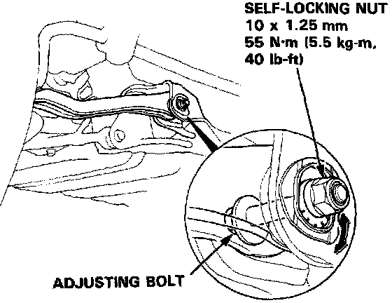 7. Install the new self-locking nut and tighten while holding the adjusting bolt.