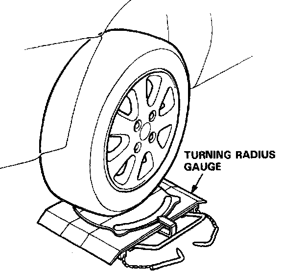 3. Turn the wheel right and left while applying the brake. Measure the turning angle of both front wheels, and both rear wheels (4WS models).