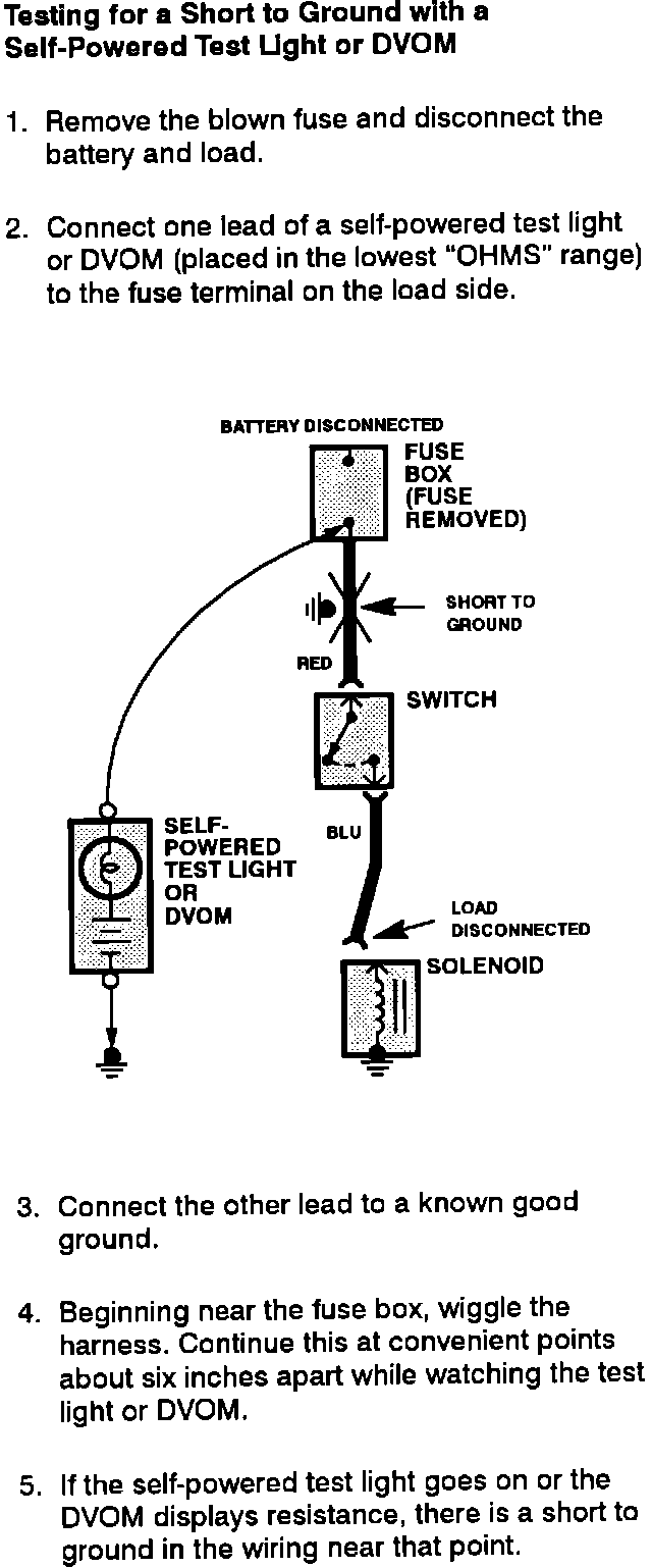 Troubleshooting Tests: Testing For Short To Ground With A Self-Powered Test Light Or DVOM: