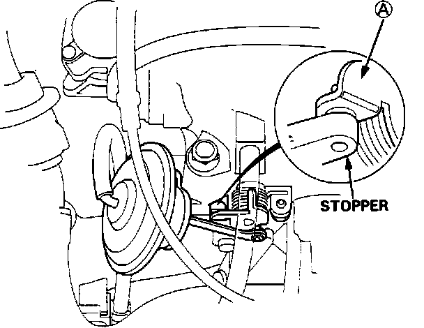 3. With engine OFF, be sure "A" of the IAB control valve is in close contact with stopper.