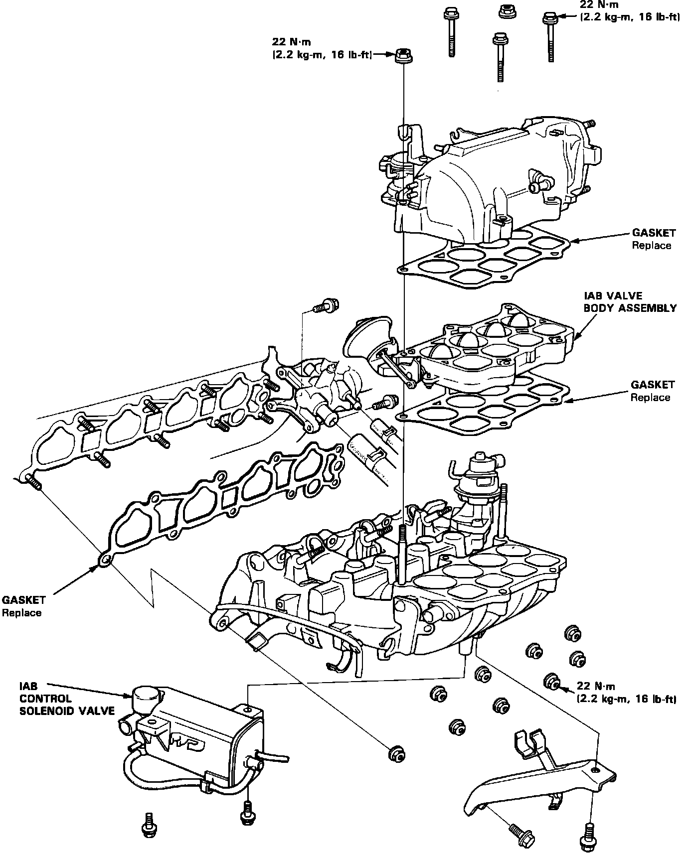 b. If problem still exists after cleaning, disassemble the intake manifold and check the IAB valve body assembly.