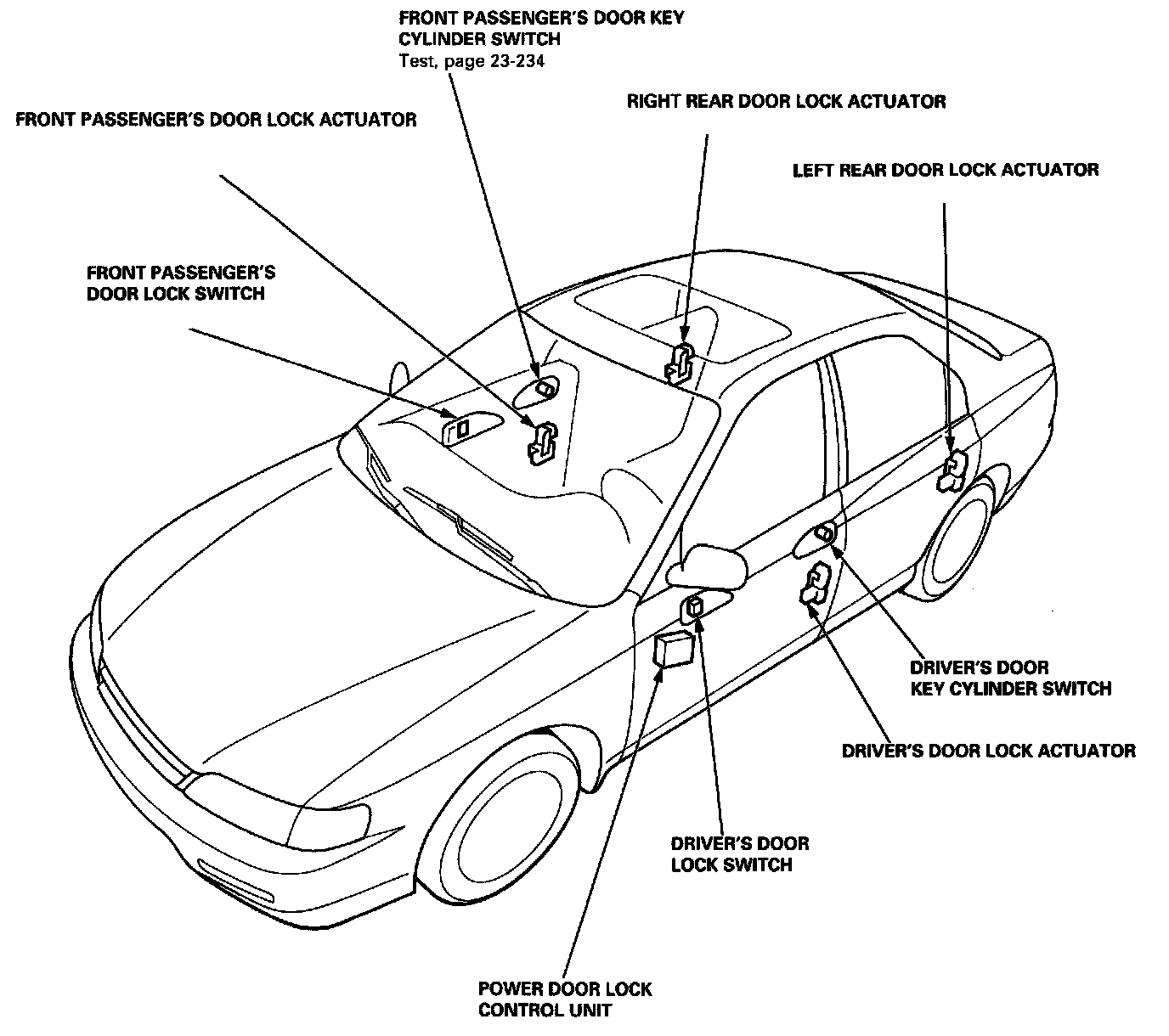 For this model, a new door lock system has been adopted to improve convenience and safety. If the key is inserted into the driver's door key cylinder, turned to the unlock position, and pulled out immediately thereafter, ONLY the driver's door will unlock. However, if the key is kept in the unlock position for one second or more, ALL doors will unlock.