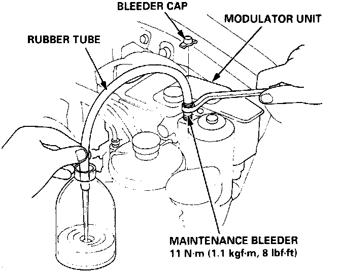 3. Connect a rubber tube of the appropriate diameter to the maintenance bleeder, and set the other end of the rubber tube in a suitable container.
