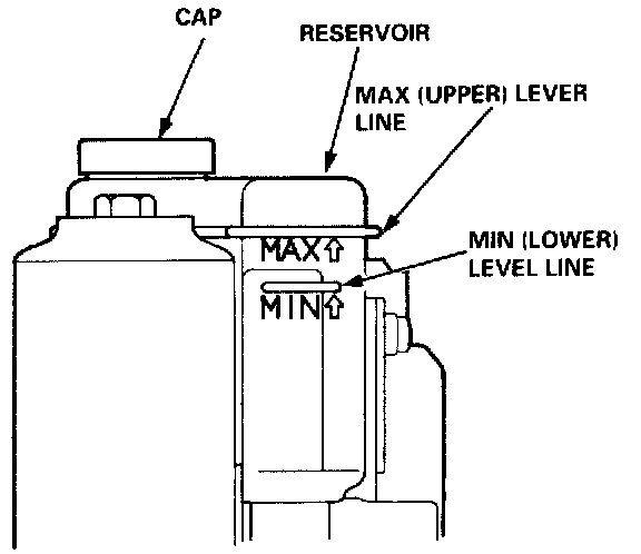 11. Check the brake fluid level in the reservoir. It should be below the MAX (upper level line. Refill the reservoir with fresh brake fluid to the MAX level line again.