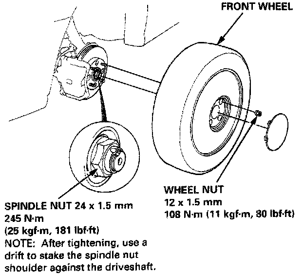 10. Install the new spindle nut, then tighten and stake the nut.
