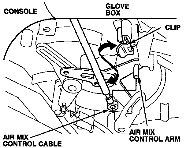 6. Disconnect the air mix control cable from the clip and arm.