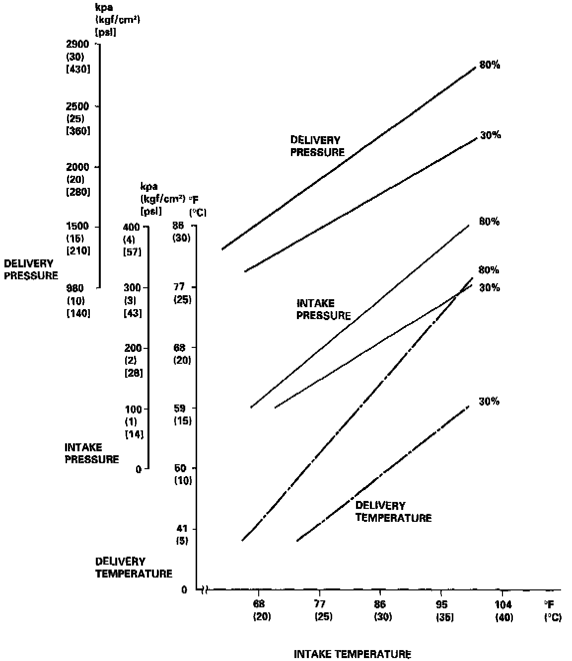 - From each point, draw a horizontal line across the delivery temperature.