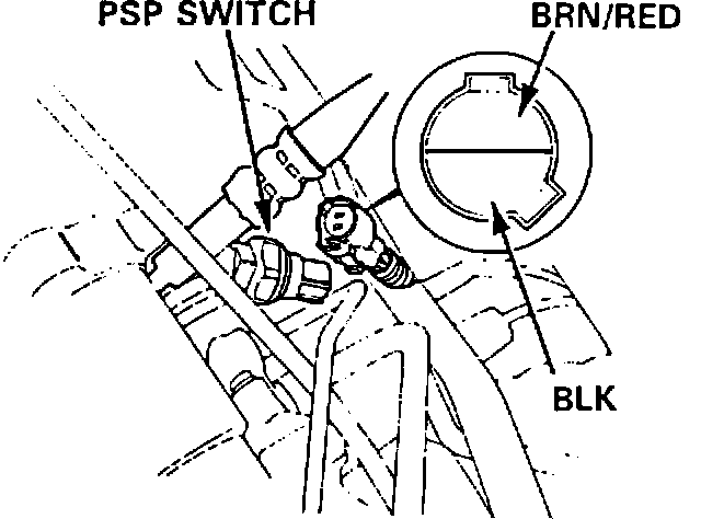 When the steering wheel is moved at idle speed, the Power Steering switch senses the change in pressure and closes, sending a ground signal to the fuel ECM. On receiving this signal, the ECM increases idle speed to compensate for the additional load from the power steering pump.