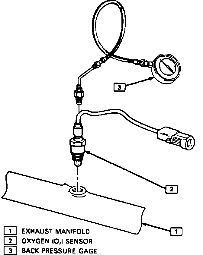 1. Install exhaust backpressure tester in place of Oxygen sensor (or CO test pipe).