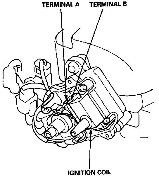 3. Using an ohmmeter, measure resistance between the terminals. Replace the coil if the resistance is not within specifications.