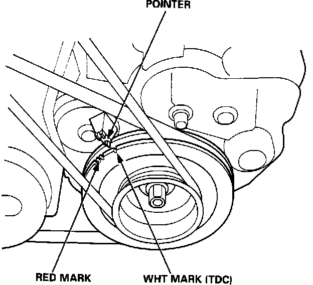 3. Connect a timing light to the No. 1 ignition wire; while the engine idles, point the light toward the timing belt cover.