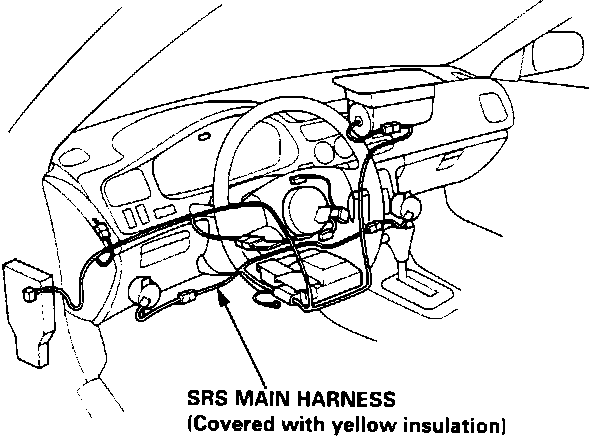 CAUTION: All SRS electrical harnesses are covered with yellow insulation. Before disconnecting any part of the SRS wire harness, connect the short connectors. Replace the entire affected SRS harness assembly if it has an open circuit for damaged wiring.