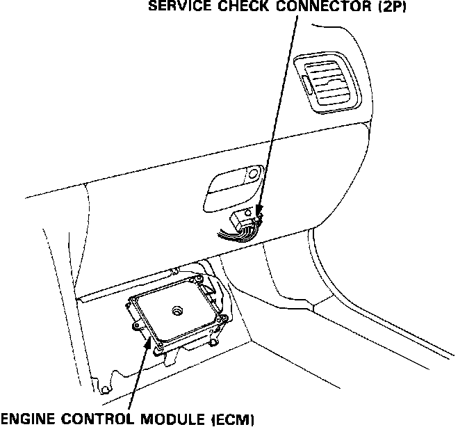 Located under the far right corner of dashboard, the Service Check Connector is a blue, two pin connector. By shorting its two pins together, the spark timing can be set.