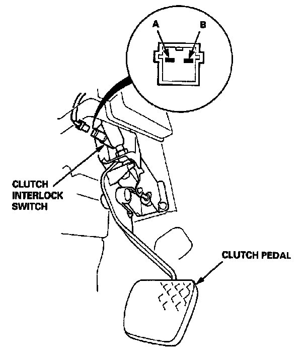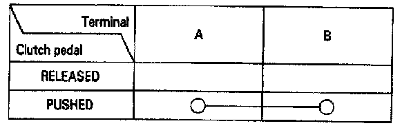 1. Remove the dashboard lower cover and knee bolster, then disconnect the 2-P connector from the clutch interlock switch.2. Check for continuity between the terminals according to the table.