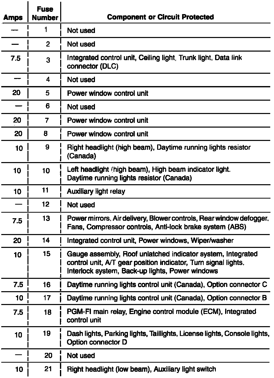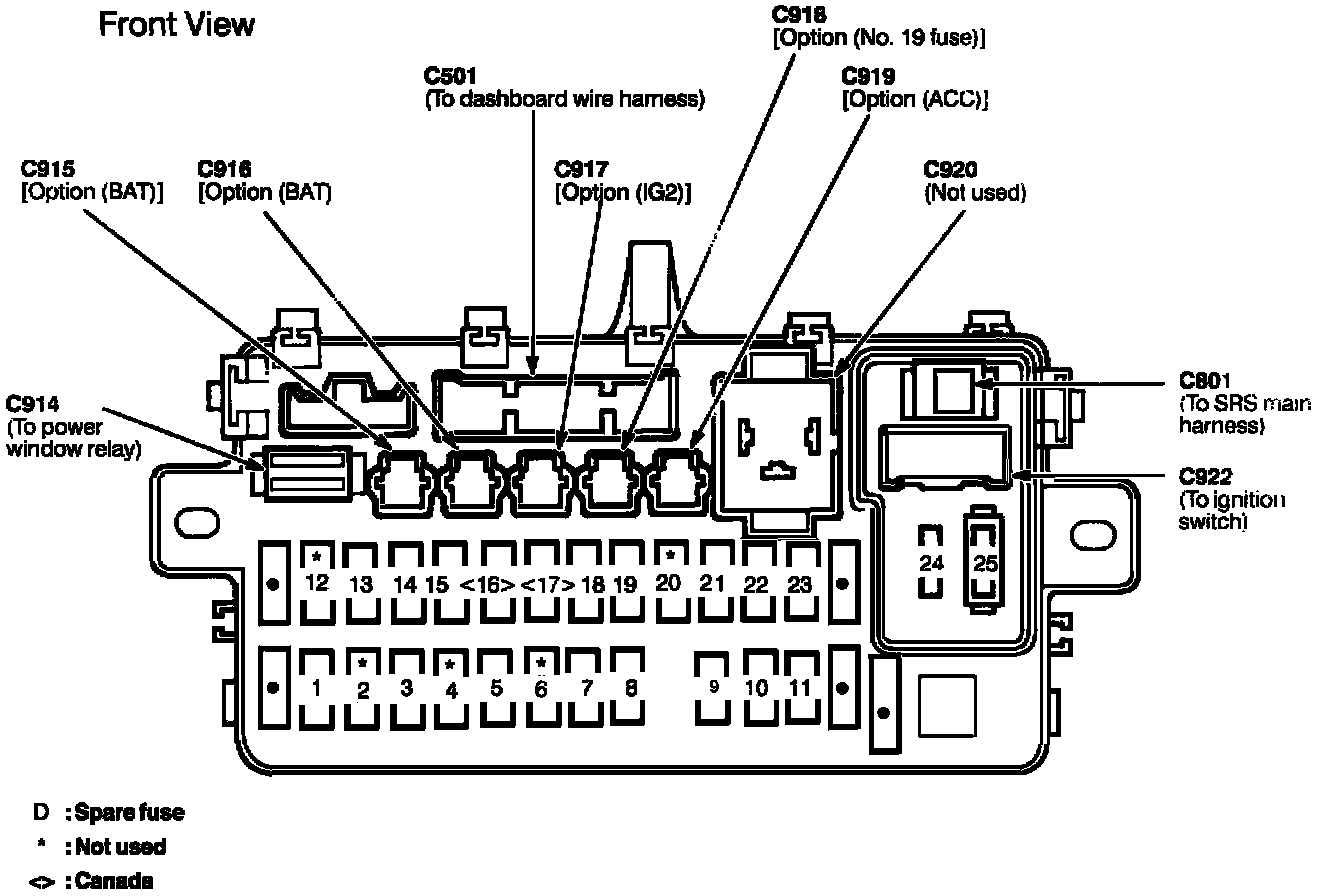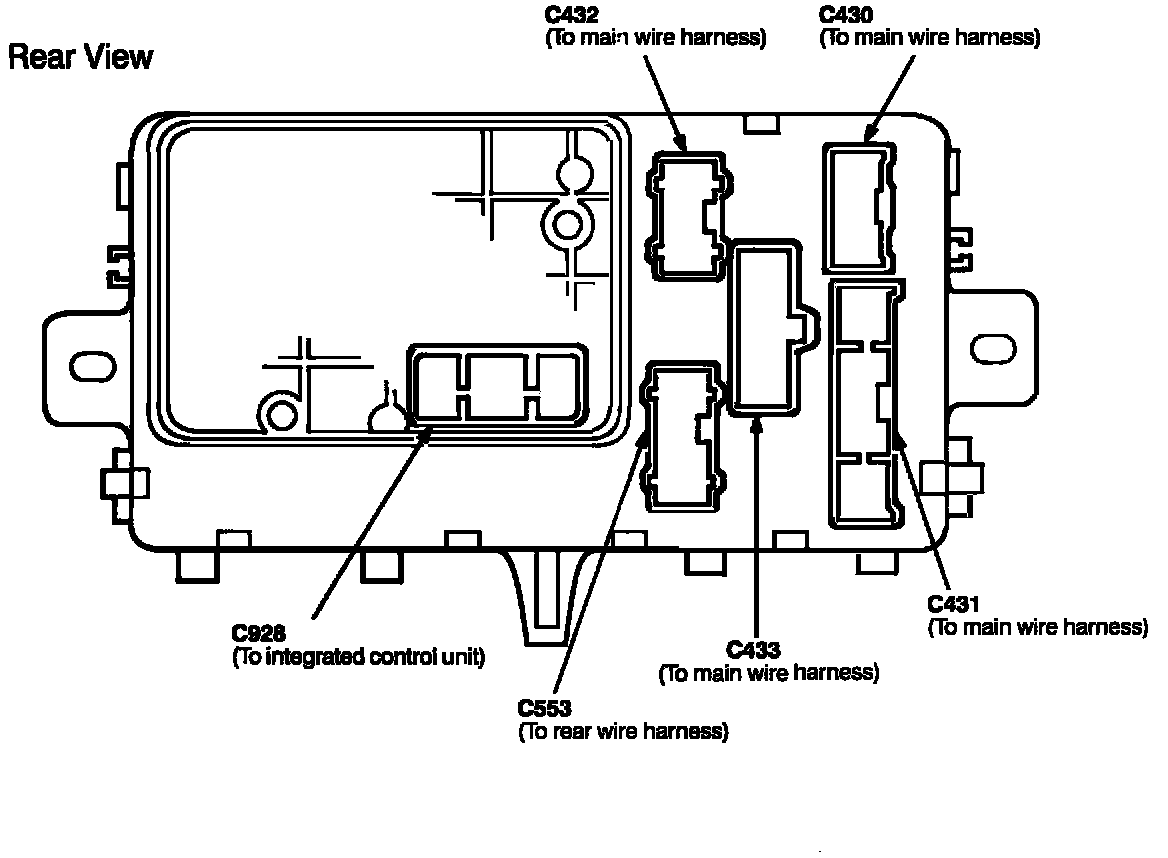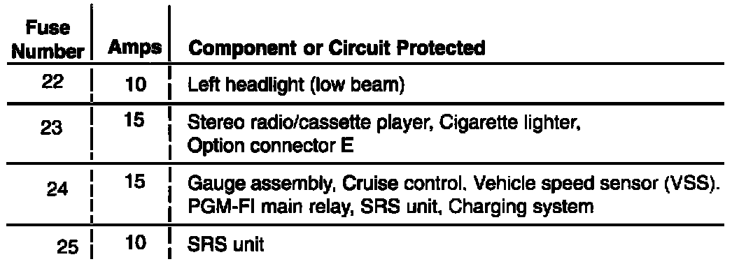 Fuse/Relay Information- Under-dash Fuse/relay Box (Rear View):