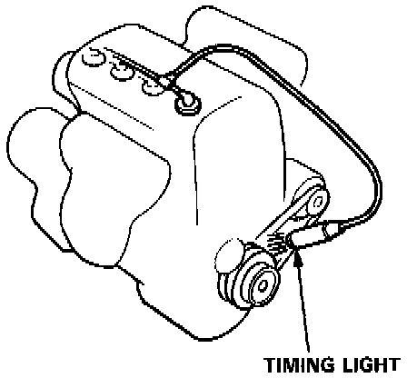 3) Connect a timing light to #1 Ignition Cable and aim it at the pointer on the timing belt cover near the crankshaft pulley.