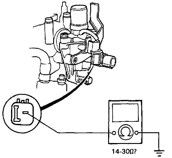 3. Measure continuity between the valve connector terminal and chassis ground. Resistance should read 14 - 30 ohms. If not, replace VTEC Solenoid Valve.