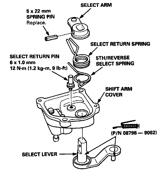 9. Install the shift arm assembly in the reverse order of removal.