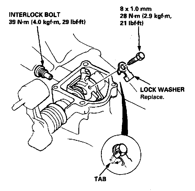 6. Bend the tab of the lock washer, then remove the bolt.