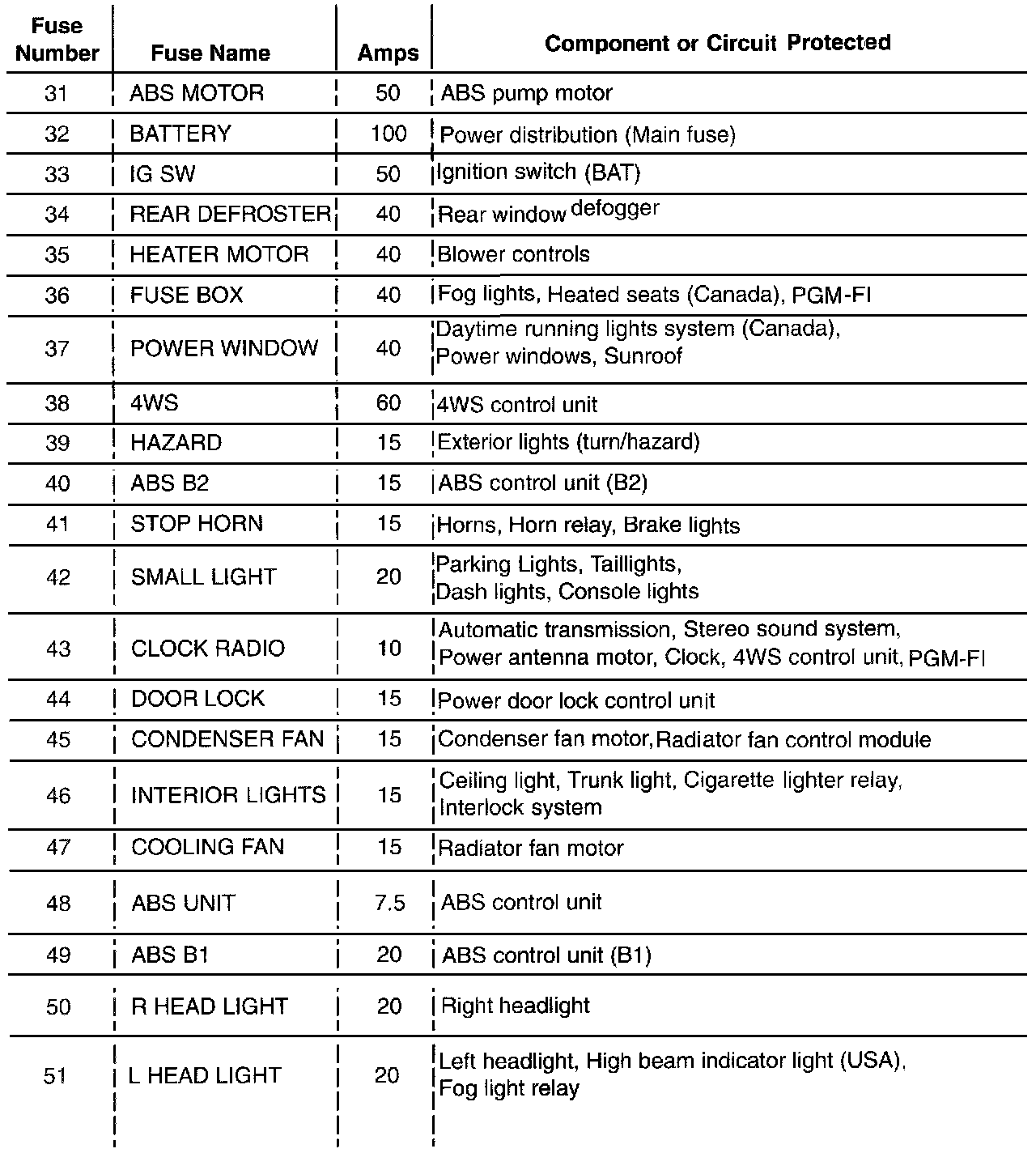 Fuse/Relay Information - Under-hood Fuse/Relay Box (Part 2 Of 3):