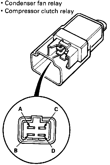 Compressor Clutch Relay TestThere should be continuity between the C and D terminals.