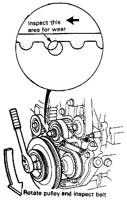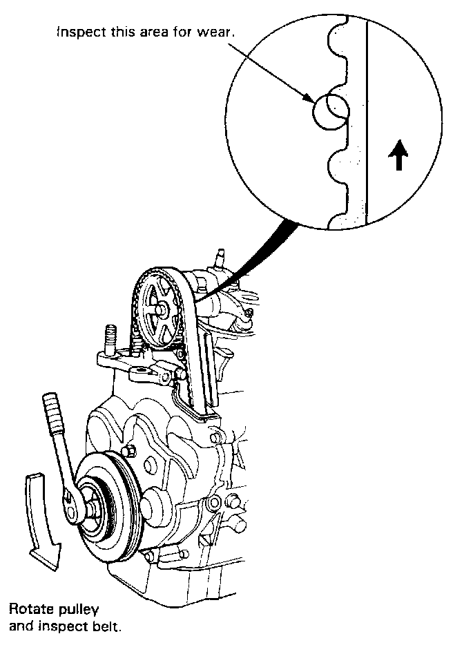 7. Inspect the timing balancer belt for cracks and oil soaking.