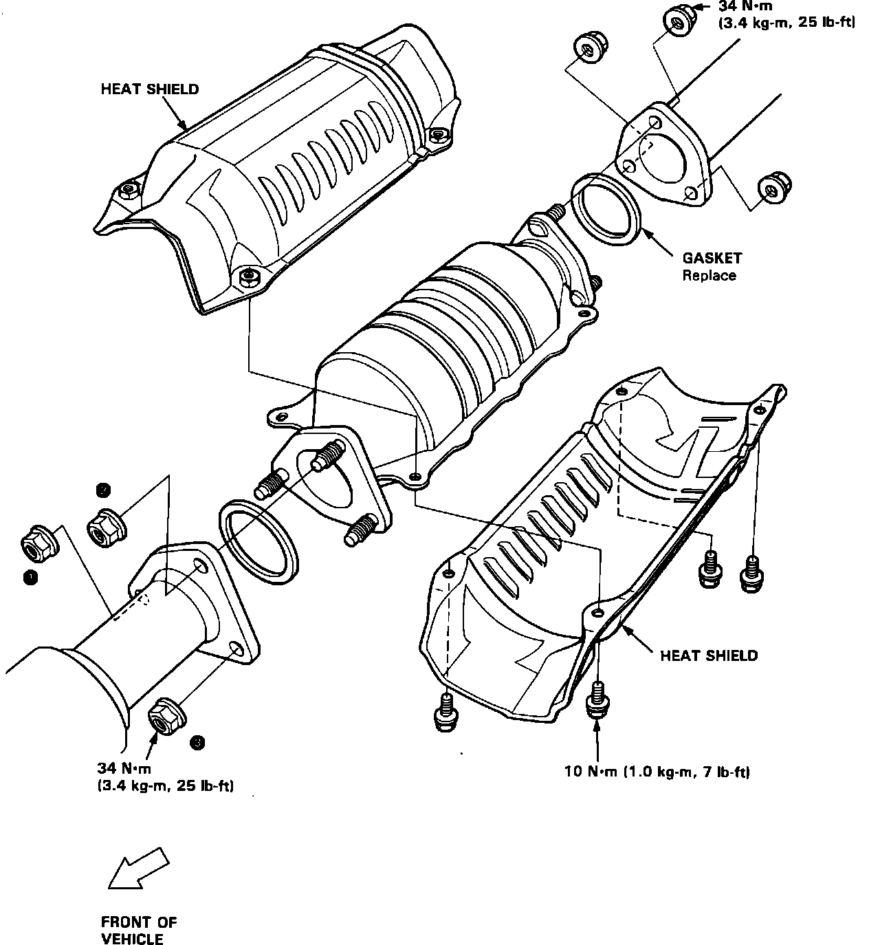 The Catalytic Converter is located in the exhaust pipe under the vehicle.