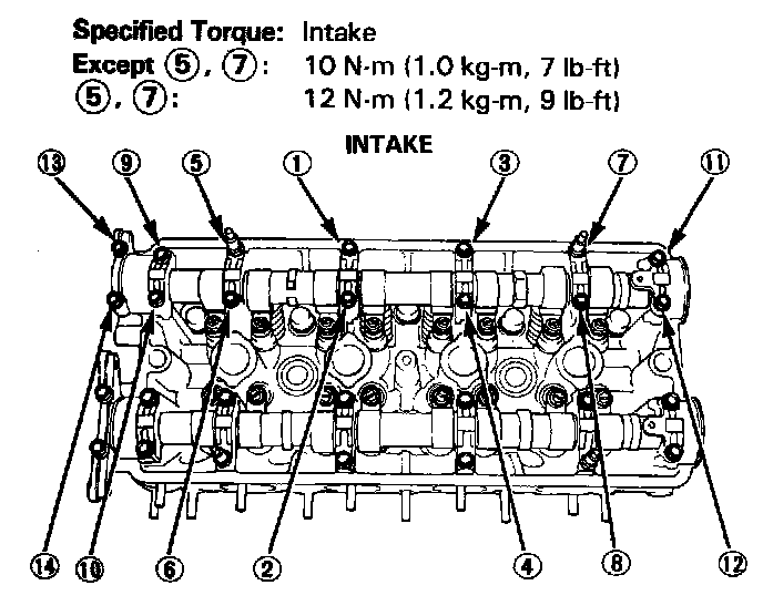 Camshaft Cap Bolt Torque Sequence: