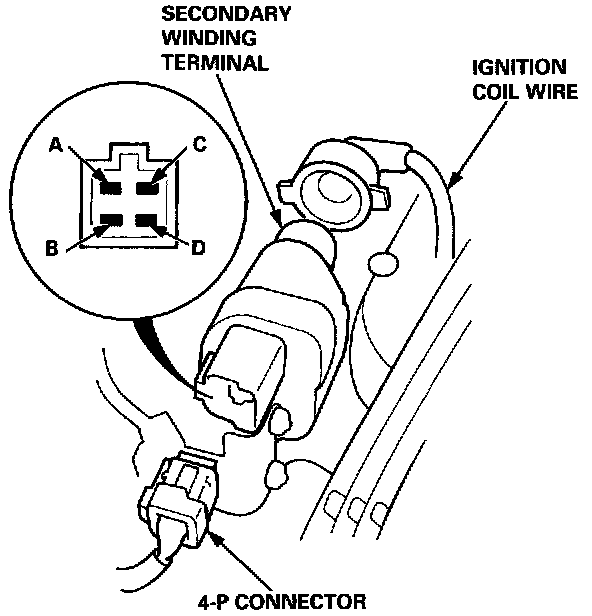 1. Turn the Ignition Switch "OFF".2. Disconnect the 4-P Connector and Ignition Coil Wire.