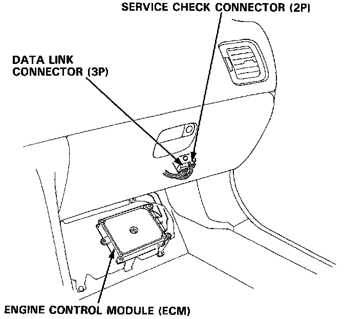 Service Check Connector / Data Link Connector / Engine Control Module: