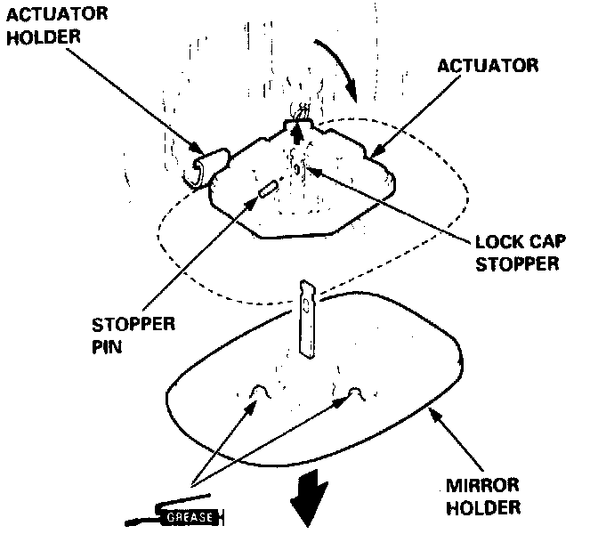 3. Pull the lock cap stopper and remove the stopper pin, then separate the actuator and mirror holder.