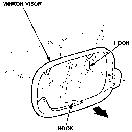 NOTE: The mirror visor and mirror cover replacement procedures shown are for the power mirror. The manual mirror visor and cover can be replaced in the same manner.