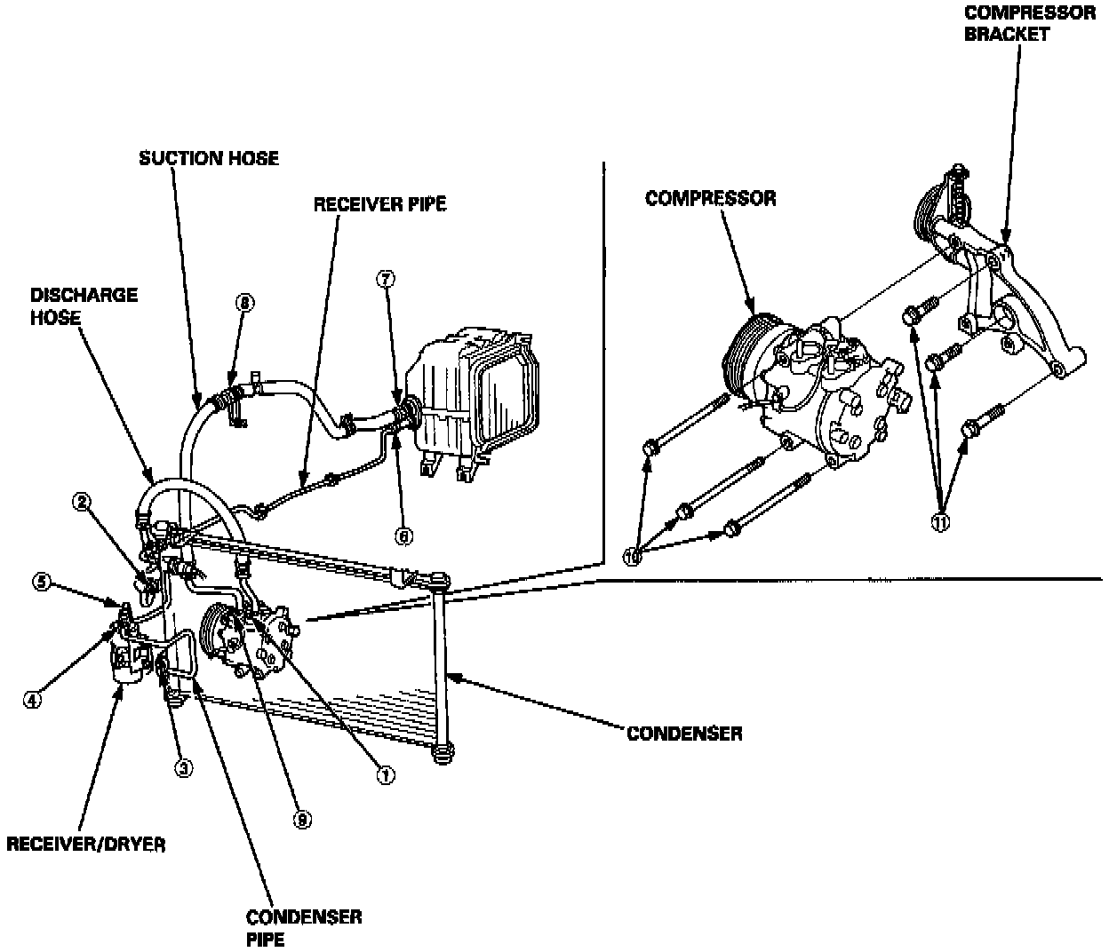(9) Suction Hose To Compressor (6 x 1.0 mm): 9.8 Nm (7.2 lb ft)