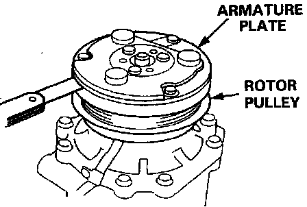 - Turn the rotor pulley by hand and measure the clearance between the rotor pulley and armature plate all the way around. If the clearance is not within specified limits, the armature plate must be removed and shims added or removed as required.