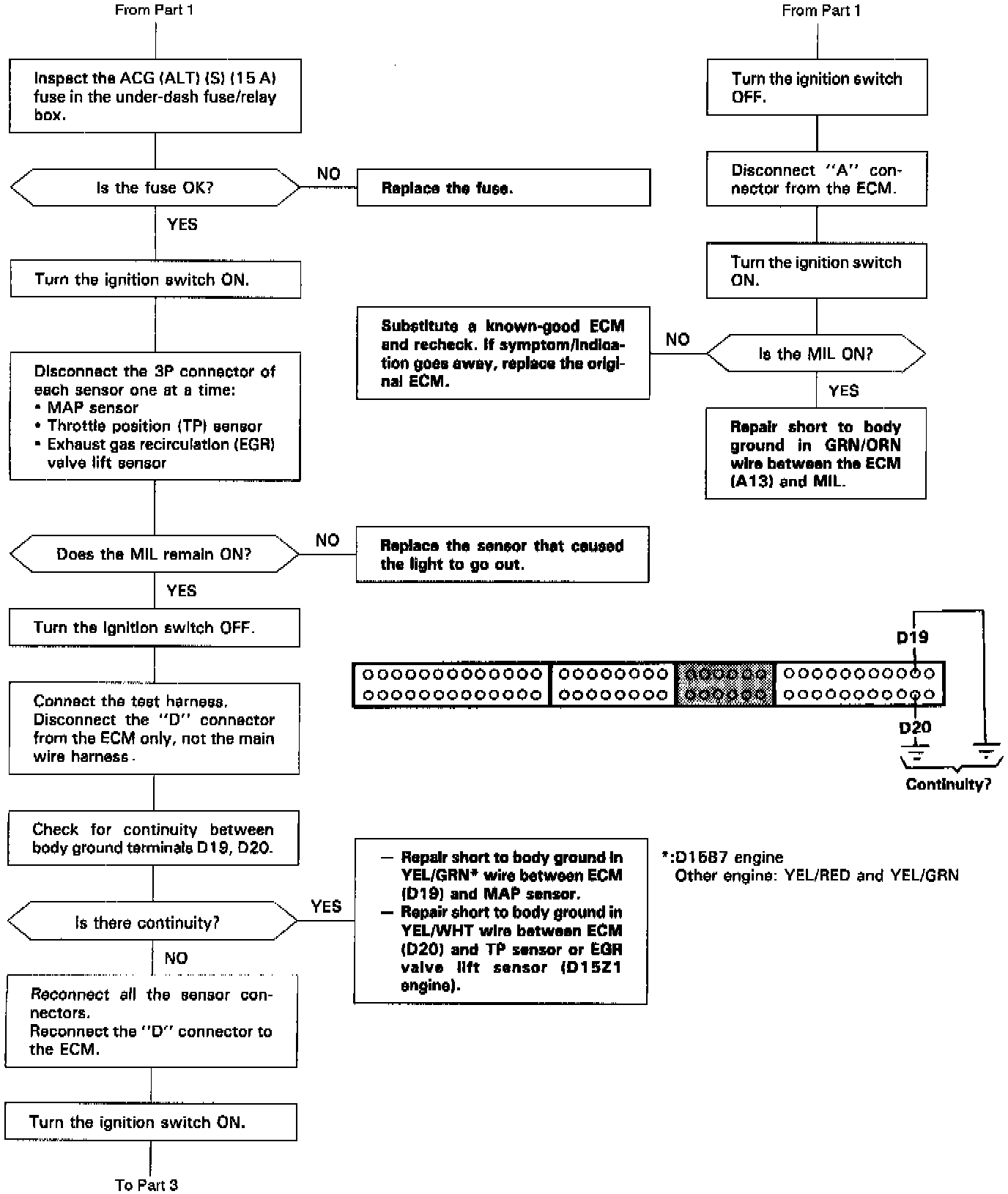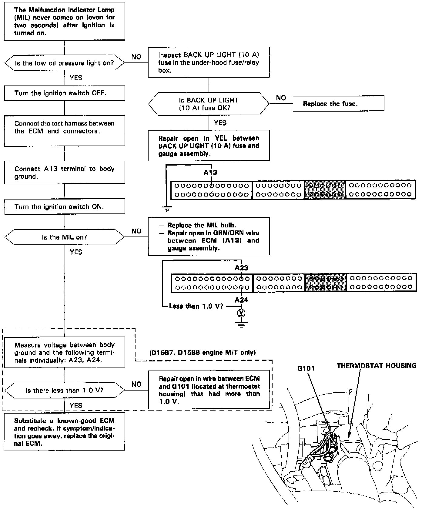 When there is no code stored, the MIL will stay on if the service check connector is jumped.